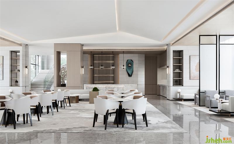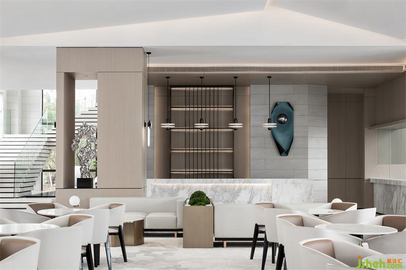 大塊面的錯落斜頂天花將不平衡動態(tài)觀感極致呈現(xiàn), 以現(xiàn)代方式重構(gòu)傳統(tǒng)秩序美, 光線提煉天花塊面輪廓南寧售樓處設(shè)計,將傳統(tǒng)的意向表現(xiàn)得深入細(xì)膩。洽談區(qū)的休閑椅簡潔輕巧,和天花相得益彰。