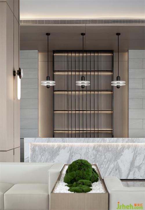 開(kāi)花的斜面穿插著折面轉(zhuǎn)角,剛?cè)嵯酀?jì)的平衡把空間界面磨練出精致質(zhì)地。木質(zhì)搭配線性金屬,使空間充滿質(zhì)樸細(xì)膩觸感的同時(shí),沉淀著含而不露的錚錚風(fēng)骨。簡(jiǎn)潔的幾何元素、和諧的色調(diào)、自然的材質(zhì),一同造就了對(duì)空間的重構(gòu)。