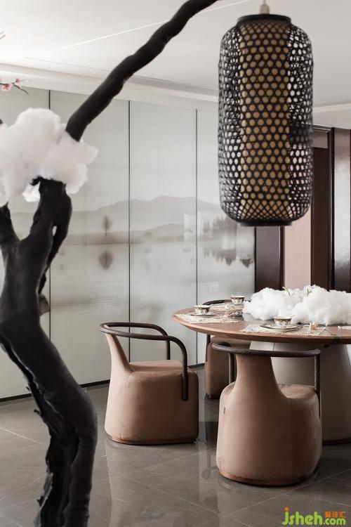 “夢(mèng)回明月夜,林杉響圓吭”,從天花垂直而下的落地?zé)?,含著虛心的品質(zhì),張揚(yáng)著精進(jìn)的意氣。一眼望去,云朵造型裝飾仿佛美出了天際,這方寸間的天地,倒別有一番意趣,秩序中呈現(xiàn)出一抹彩。暗黃色燈光進(jìn)一步營(yíng)造了空間的氣氛,室內(nèi)設(shè)計(jì)師整個(gè)空間對(duì)景、虛實(shí)、藏露、繁簡(jiǎn)手法串聯(lián)各功能空間。