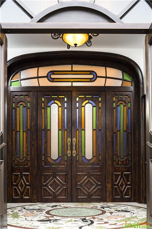 入口設(shè)計(jì)師特意設(shè)計(jì)一個(gè)玄關(guān),仿佛在提醒人們這里已與外界隔絕。獨(dú)具特色的大門由設(shè)計(jì)師為此空間定制而成,彩色玻璃鑲嵌其中。