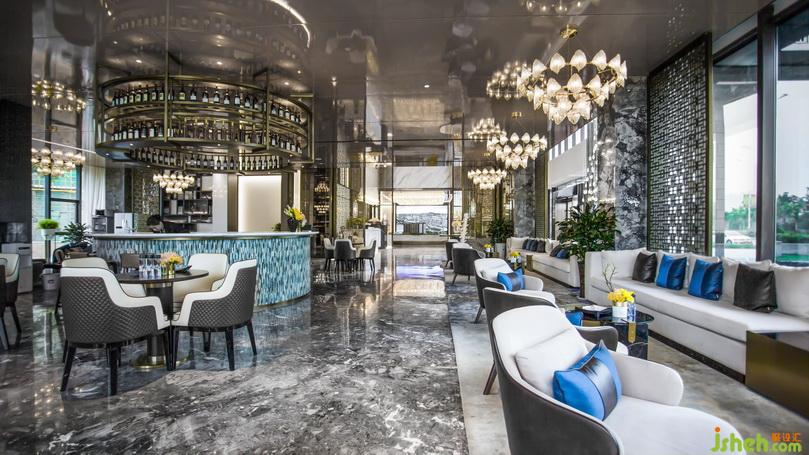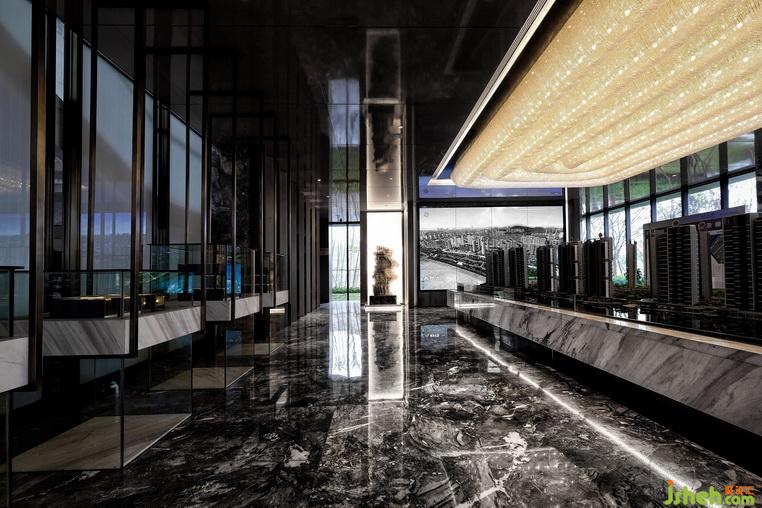 沙盤(pán)區(qū)回形環(huán)繞形式的水晶吊燈,在設(shè)計(jì)師的筆下,似仙境又似夢(mèng)境,像山間偶有瀑布一瀉而出,又為這銷(xiāo)魂灑脫的美景多了幾分動(dòng)感。