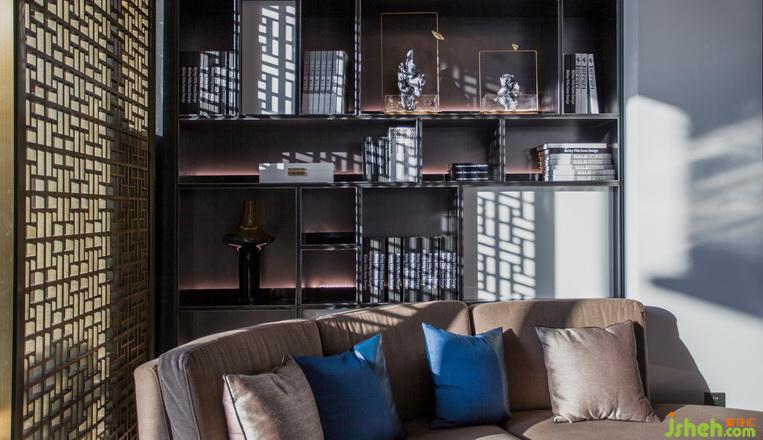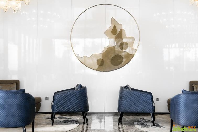 如“靜明山水”的簡淡疏松非傳統(tǒng)手工裝飾畫,描繪了閑適文人悠游林下的意境,清曠、秀爽,傳遞迥然有別于世界其它地域的山水風(fēng)情;與菱形水晶結(jié)構(gòu)吊燈,形成生趣盎然的點睛之筆。