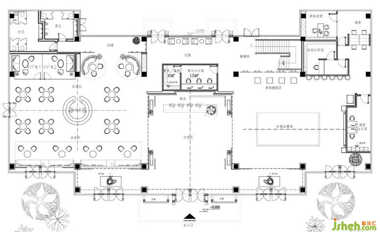 營銷中心分上下兩層,一層接待區(qū),二層VIP接待室。平面布局上,路線不限定,可能性會多一些,空間也因此會顯得大了些。
