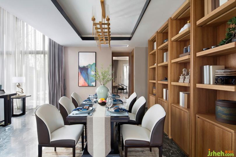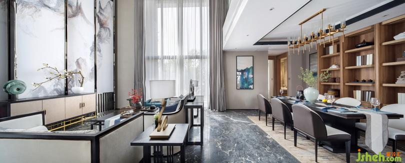 客廳與餐廳一氣呵成,配以整面的落地窗引入自然的光照,將大自然的美景引入生活,同時將禪意美學裝飾手法融入其中,營造一種中國式的優(yōu)雅奢華空間,身處一隅,也覺空闊透天。另外少即是多的設(shè)計理念不僅在每一件陳設(shè)上,同時也在色彩、造型上,減緩視覺上的局促。室內(nèi)設(shè)計師大面積的中式花屏創(chuàng)造出豐富的場景,完美地將情、景、心與物交融在一起。色彩以大地色調(diào)為主,偶爾帶出知性藍增添空間的雅致氛圍。另外在軟裝陳設(shè)上摒棄常規(guī)堆砌方式,以謙遜的姿態(tài)讓位于空間的精致與靜謐,曲水留詩,詩意棲居。室內(nèi)設(shè)計師