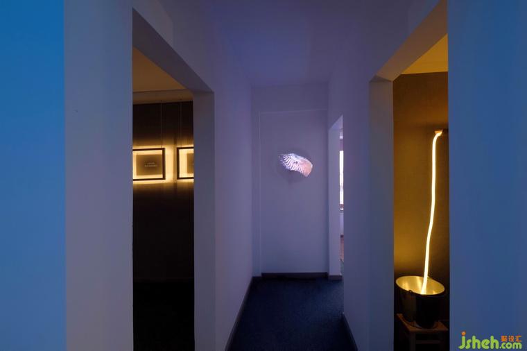 初入該空間是一片漆黑的景象,按下開關(guān),首先映入眼簾的頂部錯(cuò)落有序的燈帶,就如同發(fā)光的芯片般,可根據(jù)不同的心情更換相應(yīng)的顏色。會(huì)所設(shè)計(jì)