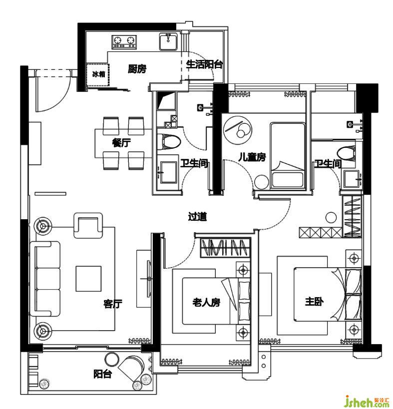 整個戶型僅為892三室二廳,十分通透。初入玄關,一眼望去其實是一個毫無遮擋關系的開放空間,但這里的采光及其好,因此在一天的不同時刻,陽光都以曼妙的舞姿活躍在四周,即使不放置任何家私,稍作變化,空間本身便足以作為一個展示體驗區(qū)。團隊幾經溝通,于是在入口的地方設置一道具有銹跡感,恍惚感的玻璃屏風,前面設置矮柜將玄關隔出同時又和餐廳的相關聯,在除去其功能屬性同時我們也希望這里是一個自我投射,自我感知的出入口為出入這個空間的主人增添一份儀式感,有過去的痕跡,又讓你看清自己。室內設計師