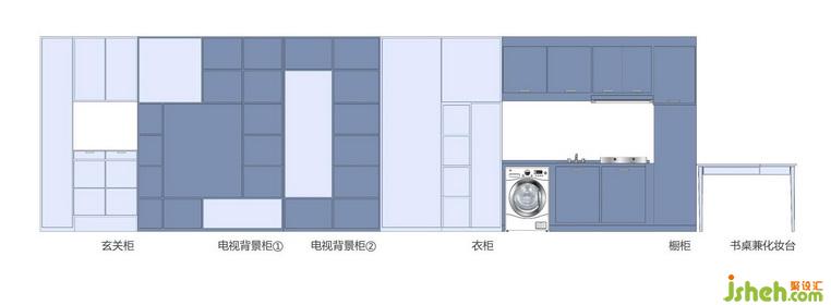 對(duì)于存量類(lèi)小戶型的打造,最重要的就是功能區(qū)的劃分以及家具的多樣性、實(shí)用性。麻雀雖小,五臟俱全。