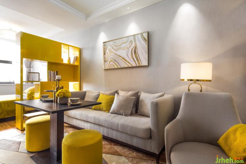 黃色、流光溢彩,極盡奔放。在色彩的挑選上我們沒(méi)有選擇溫和的暖黃,而是選擇了亮眼的黃裝飾整個(gè)室內(nèi),生活本該如此,燃燒所有只為最燦爛的人生。