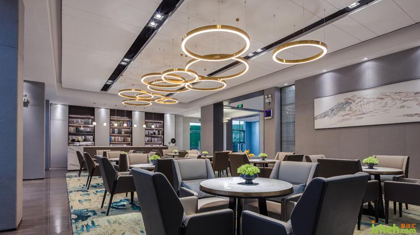 洽談區(qū)承一處閑暇,以中式的神韻為底,融現(xiàn)代幾何圖形為“翼”大小不一,飛懸半空。