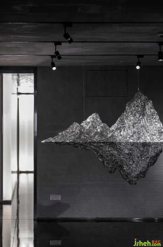 遠處鄭路老師的一件山型雕塑作為端景,且行且看繞著這座山型雕塑,我們才能進入豁然開朗的公共洽談區(qū)。