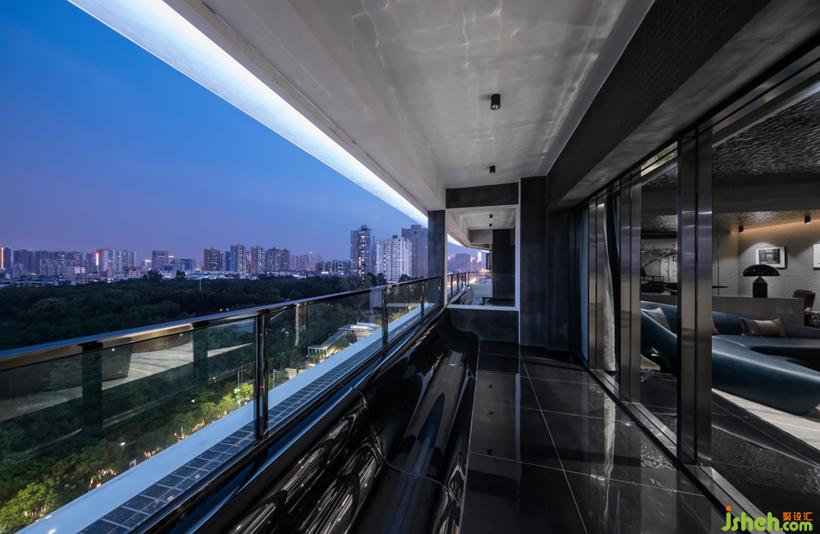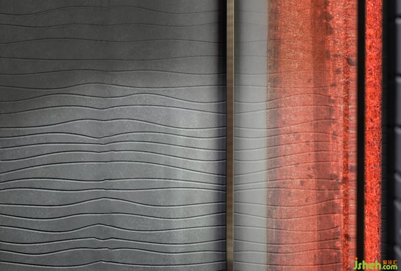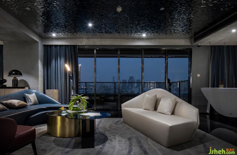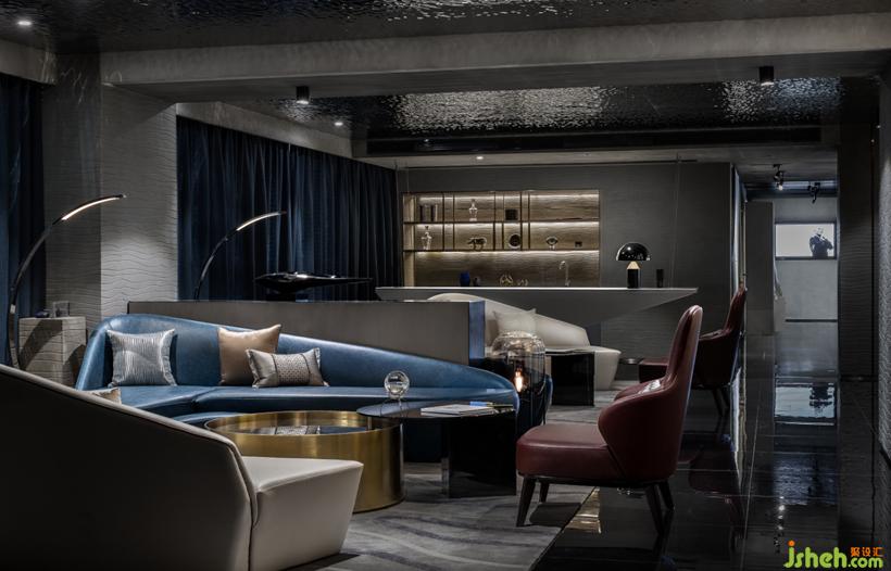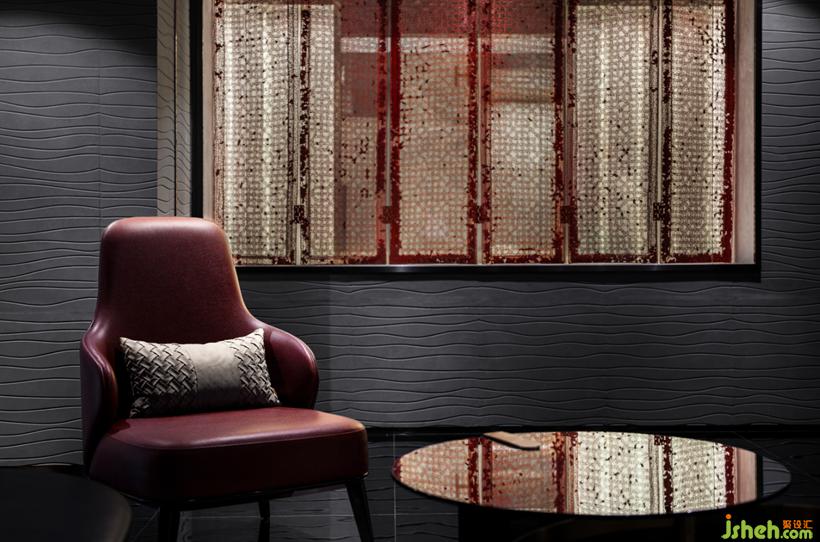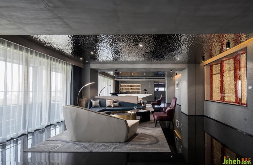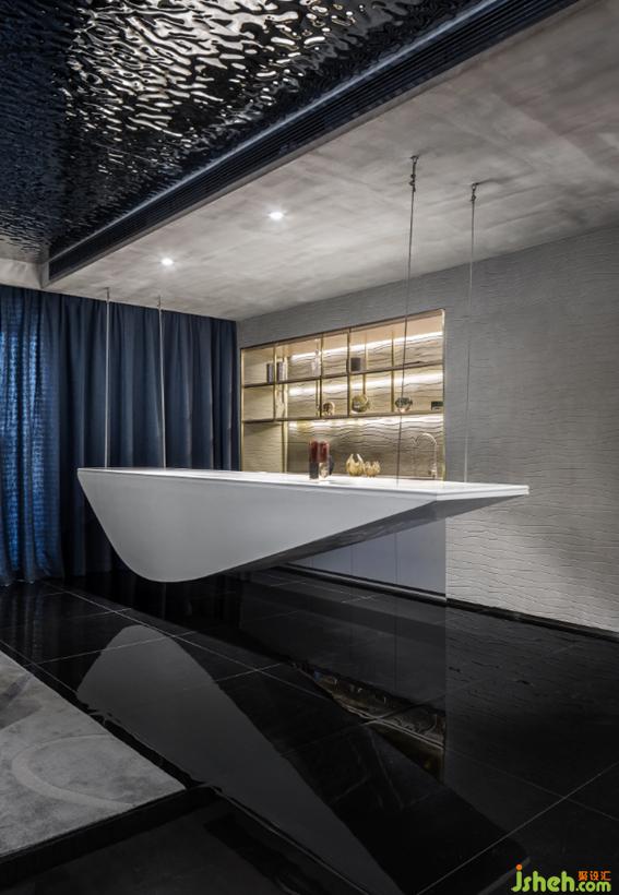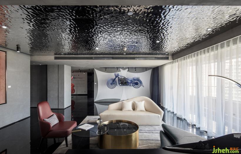 天花頂水波紋金屬板材質(zhì)在地面暈開層層波浪,讓光線若有似無的流動(dòng)。