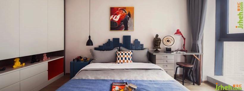 兒童房我們以藍(lán)色作為主色調(diào),局部以橙黃軟飾作為點(diǎn)綴,豐富多變的元素,豐富了空間的同時也給了孩子想象的空間。