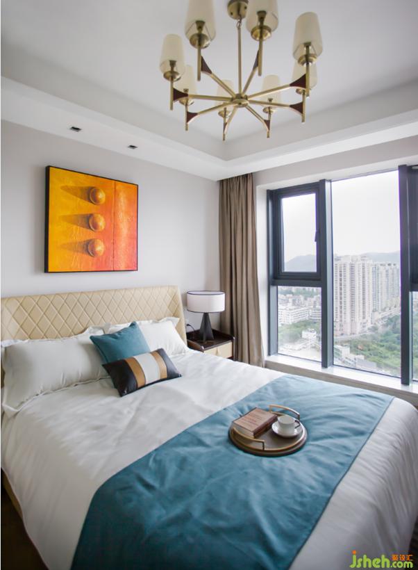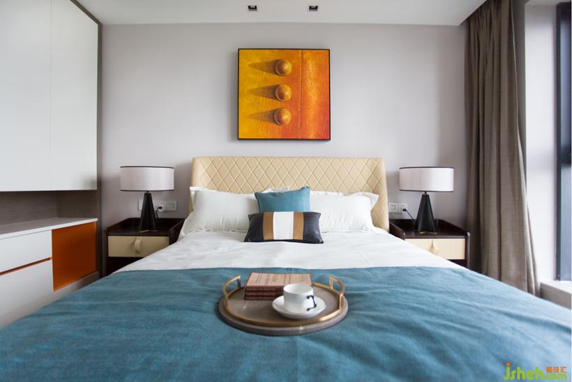 現(xiàn)代感十足的床頭燈飾,神秘有趣的掛畫,是空間主人對(duì)當(dāng)下生活及自我的一種解讀。