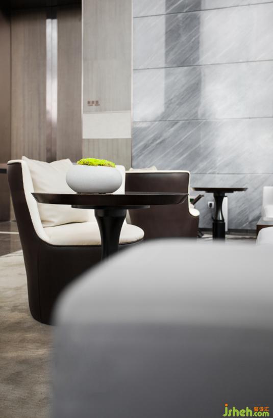 空間是人與環(huán)境的一個(gè)重要鏈接,接待廳盡10米的建筑挑高引入了自然光線的同時(shí)也將戶外的景致帶入進(jìn)來(lái)。