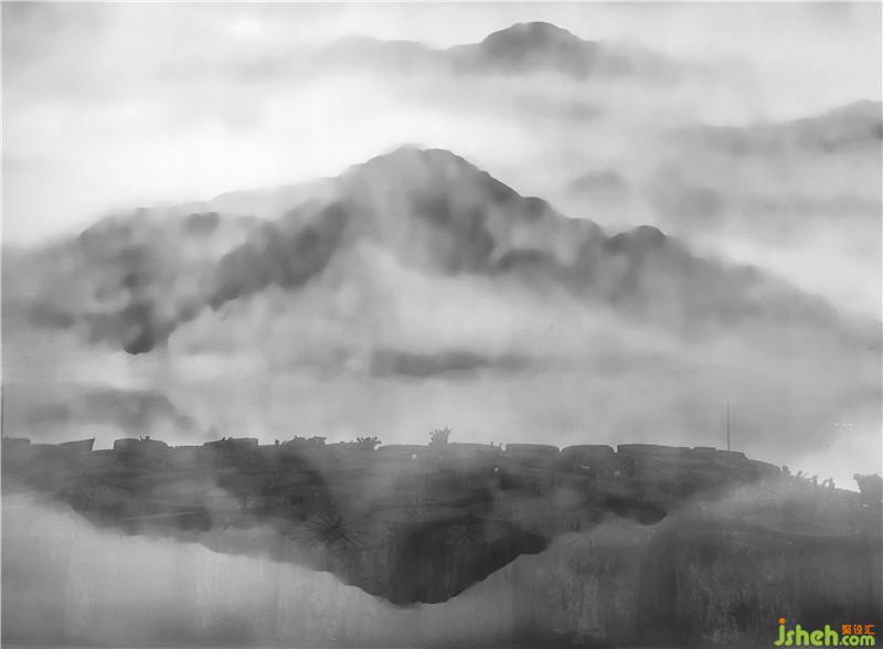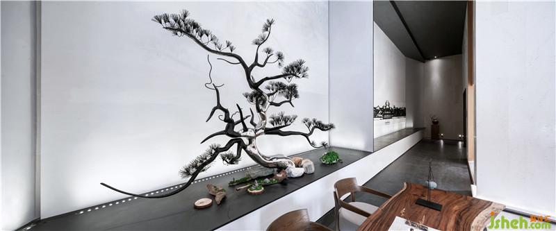空間以水墨江山之態(tài)融合木質(zhì)墻體