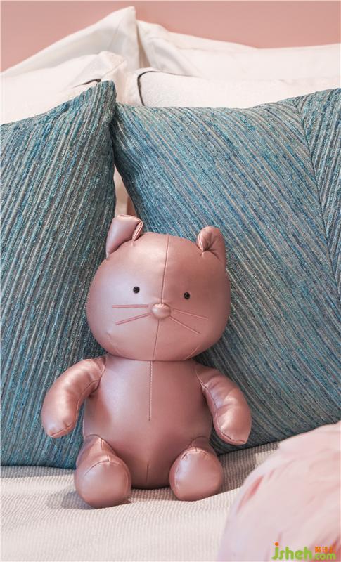 大面積的色塊避免了空間的艷俗平衡了色彩關(guān)系淺藍(lán)色與粉紅色的互相襯托增添了空間的層次感和少女的清新氣質(zhì)。樣板房設(shè)計(jì)