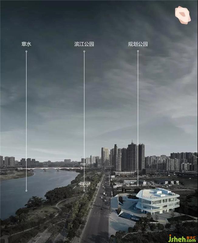 作品“鯨見“生長于江西省贛州市江新區(qū)章水一旁,并以此作為主題貫穿整體空間,將大海之浩瀚,海景之意境融于其中,通過尋覓的過程,經(jīng)過律動的海面波濤,優(yōu)雅的世紀(jì)冰川,深海的魚群行蹤,最終扶搖而上。裝修設(shè)計(jì)