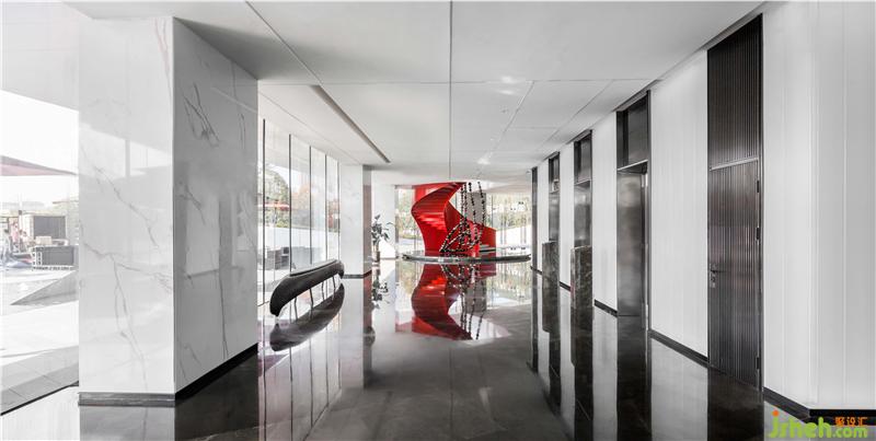 The entire building is divided into three floors, the outer contour of each floor is kept the same, and the center of gravity is used as the center of rotation to rotate 8 degrees clockwise, so that the entire building presents a dynamic beauty. At the same time, the addition of twisting, rotating, and regular zipper fasteners makes the whole building more rhythmic. A "crater" is arranged inside the overall building, making the local space layer of the building as high as 16.5 meters, giving a space impact.