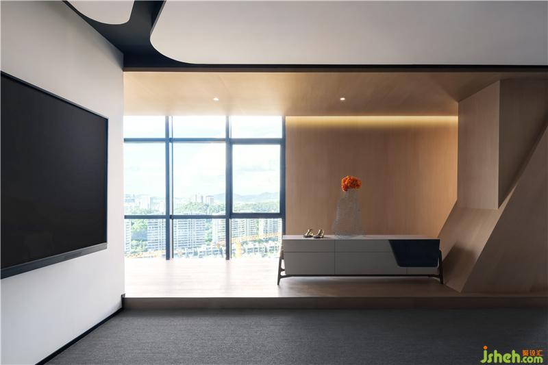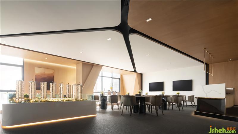 洽談區(qū),意在去售樓處化,用當(dāng)代藝術(shù)重新定義空間,打造專(zhuān)屬的都市會(huì)客廳。頂部獨(dú)特的設(shè)計(jì)減輕空間縱向厚重感,延伸效果由此產(chǎn)生。木質(zhì)所帶來(lái)的輕盈和流暢的線(xiàn)條隨處可見(jiàn),到訪(fǎng)者逐光而行,感受設(shè)計(jì)的智慧。這便是我們給你最好的禮物。