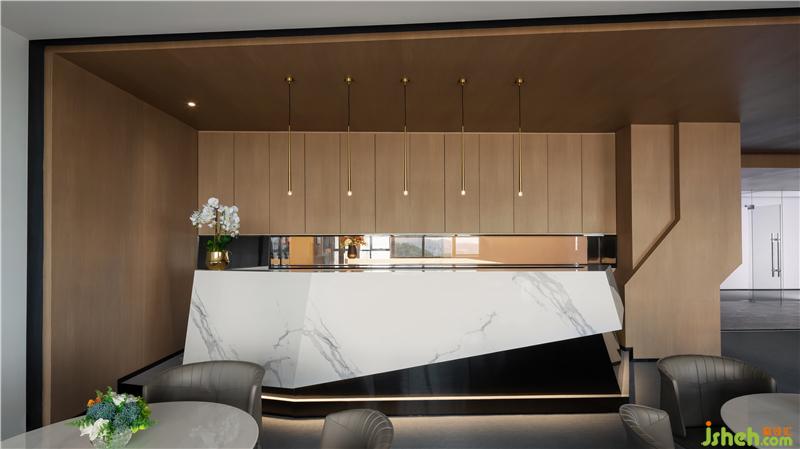 由入口進(jìn)入室內(nèi),售樓處設(shè)計(jì)采用山水紋理的大理石的接待臺(tái)便映入眼前,傳達(dá)氤氳的氣息,使接待中心各個(gè)空間流暢而富有變化,與線(xiàn)條型的燈光樣條遠(yuǎn)近呼應(yīng),營(yíng)造出包容氣質(zhì),似乎也 在隱隱的傳達(dá)這座城市的容貌,慢慢的深入,漸漸展露它的真實(shí)面容。