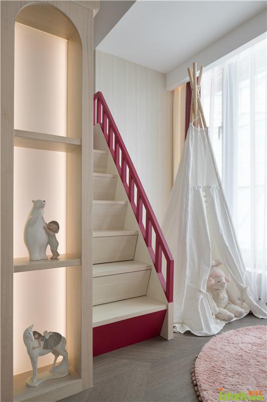 兒童房的設(shè)計(jì)中,我們摒棄了一切可以被去除的元素,為空間做了大量的減法,甚至連兒童床也被改造成了一座充滿少女心的公主城堡,讓空間的利用率達(dá)到最大的同時(shí),守護(hù)那份本該屬于孩子的公主夢(mèng);