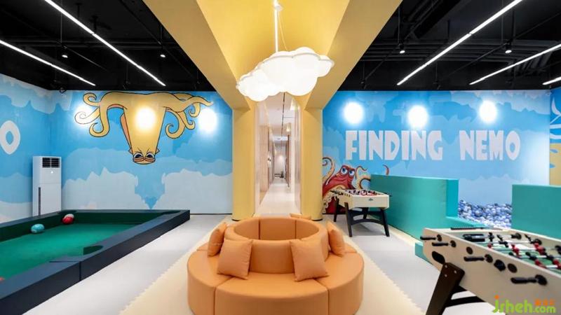 當(dāng)小孩在泡泡池玩耍疲乏了,就地一躺,身旁是淺藍(lán)的海水,小丑魚與海龜在其中滑動,頭頂則是祥云朵朵,仿佛自己也置身其中,留下更多夢幻遐想。