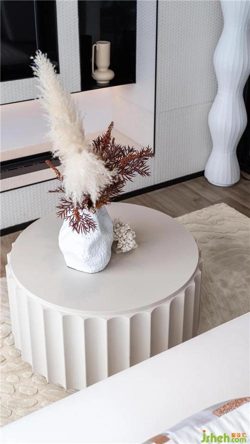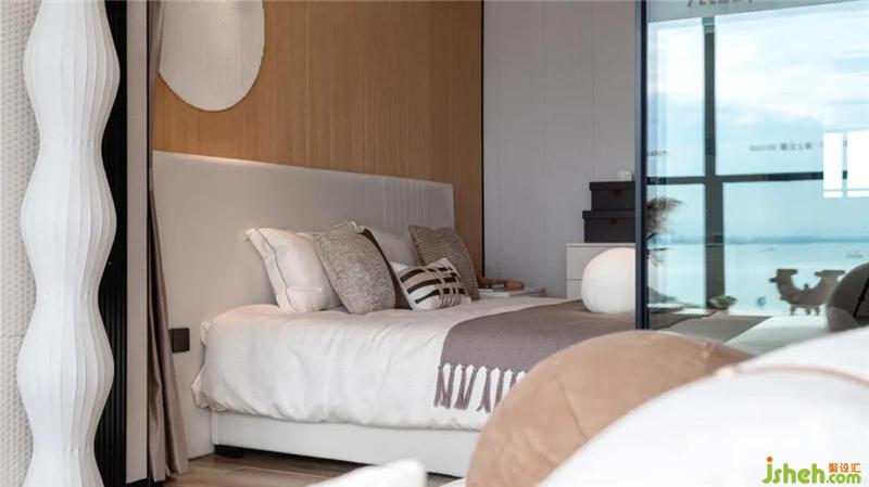 臥室的空間提取了沙灘、土、巖石中的米色和咖色,搭配掛在墻上的立體海沙藝術(shù)裝飾畫,加強視覺,讓人心中盛滿溫柔曼妙的感官。