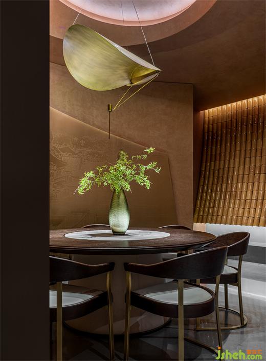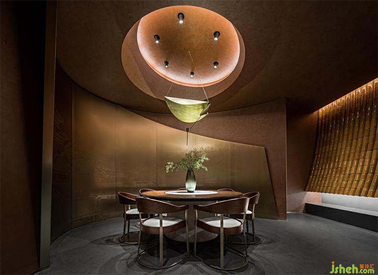 知嘛健康成都春熙路店餐廳設計運用大量曲面造型用以遮罩分割,帶來夜色中于庭院踱步找尋的空間體驗。光影迷離、疊印交錯,“空”的意趣畢現(xiàn)。