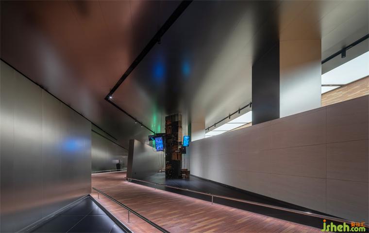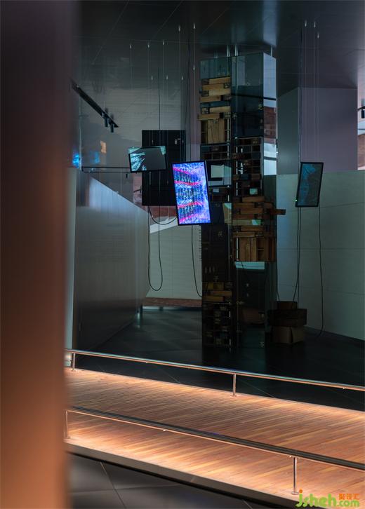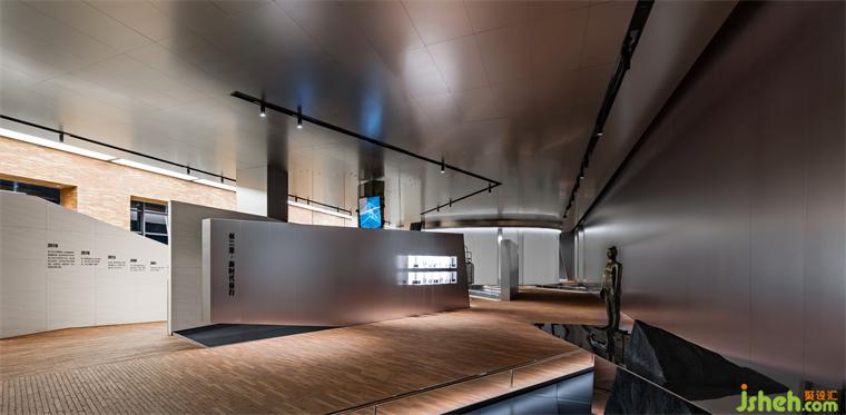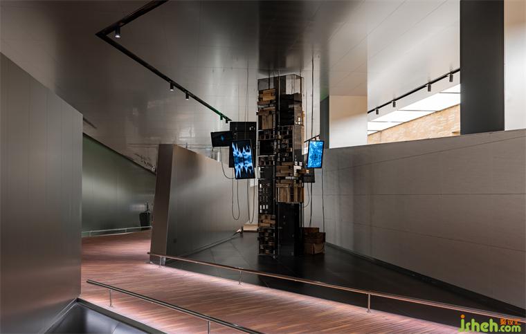 黑色鏡面與不銹鋼天花打造出空靈質(zhì)感,使人沉浸其中,恍若進(jìn)入另一番探險(xiǎn)。參觀大廳設(shè)計(jì)疊錯(cuò)的折線、轉(zhuǎn)換的視角在多維線性空間展開。數(shù)字化生產(chǎn)工藝實(shí)景和智能化顯屏櫥窗二次折射元宇宙的光影,輝映著綿延在時(shí)空中的品牌精神。