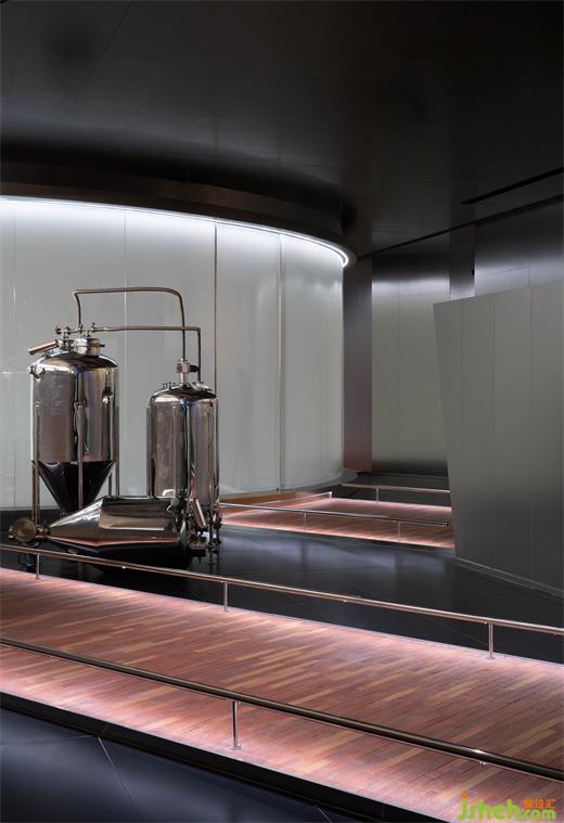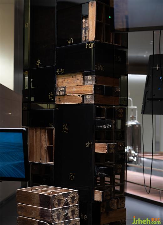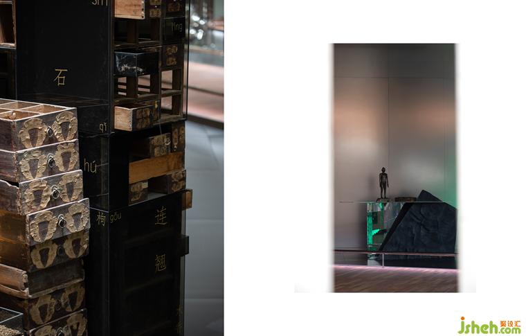 傳統(tǒng)藥柜和生產(chǎn)設(shè)備在解構(gòu)重組后,參觀大廳設(shè)計(jì)將遙遠(yuǎn)的過去與未知的未來相鏈接,在與時(shí)間的對(duì)話中創(chuàng)造未來范式的多維感知體驗(yàn),體現(xiàn)了“讓傳統(tǒng)在現(xiàn)代生活中獲得新生”的品牌信念。
