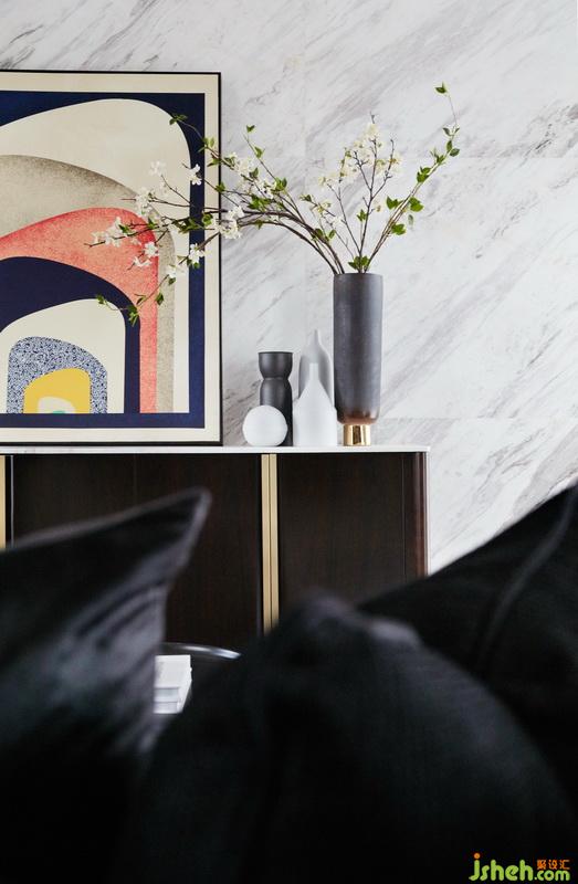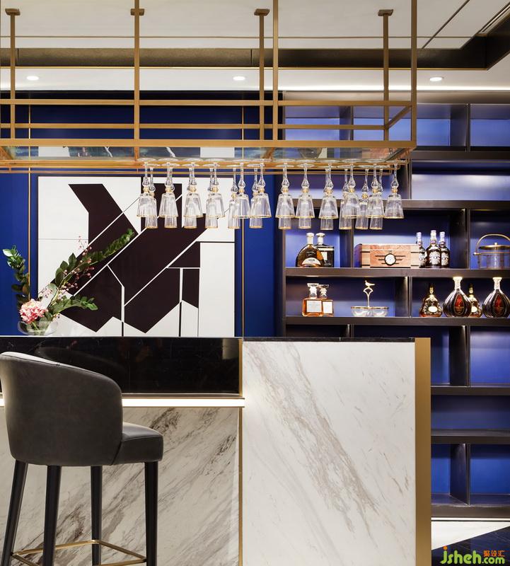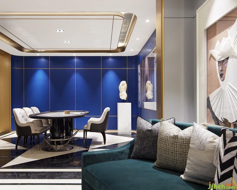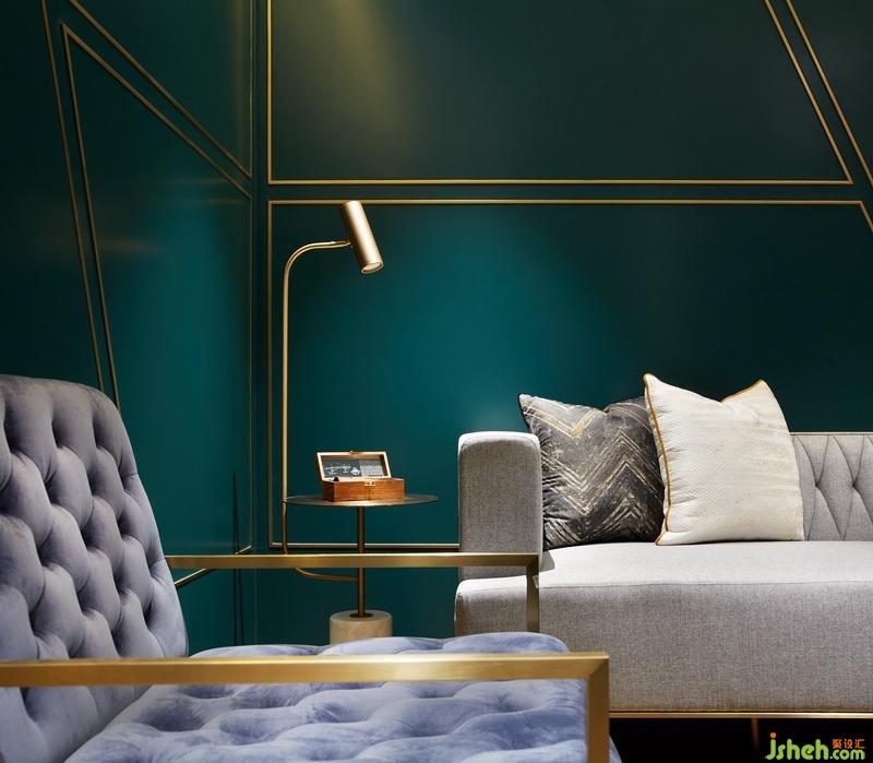 主題定義為了不起的蓋茨比,在電影海報(bào)中呈現(xiàn)ArtDeco(藝術(shù)裝飾)的符號(hào),整個(gè)空間的室內(nèi)設(shè)計(jì)的靈感源于對(duì)ArtDeco的崇高致敬,也在強(qiáng)調(diào)著對(duì)藝術(shù)敬意和熱愛(ài)。因此除了在空間設(shè)計(jì)發(fā)揮容納、展示、使用方便的優(yōu)勢(shì),也著重在陳列上的藝術(shù)性。如客廳中的沙發(fā)我們也采用了時(shí)尚頂級(jí)意大利品牌Baxter,其以生產(chǎn)如藝術(shù)品般值得擁有和收藏的家具產(chǎn)品而著稱。長(zhǎng)款沙發(fā)名為Cherster Moon擁有特別調(diào)製深藍(lán)色,顯得高貴優(yōu)雅,提升整個(gè)客廳的氣質(zhì)。
