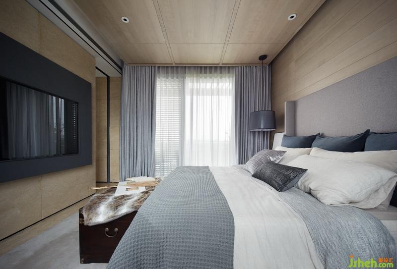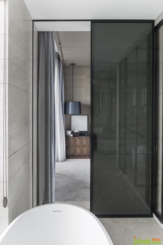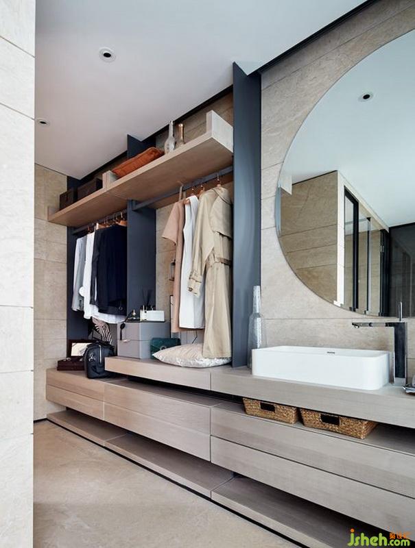 半開放式的主衛(wèi)兼具不同的動線??拷P室的一面隔斷預留門洞,打開推拉門即可直接從臥室步入衛(wèi)浴間,進而深入到步入式衣帽間,大大縮短了動線,為主人日常起居提供便利。