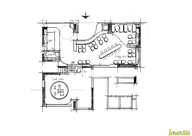 可以說(shuō),在功能布局上,設(shè)計(jì)師做了大膽的取舍:考慮到項(xiàng)目的面積比較小巧,我們?cè)诒WC銷售功能的基礎(chǔ)上只保留了部分的營(yíng)銷板塊,盡可能地把空間的細(xì)節(jié)美舒展開(kāi)來(lái)。