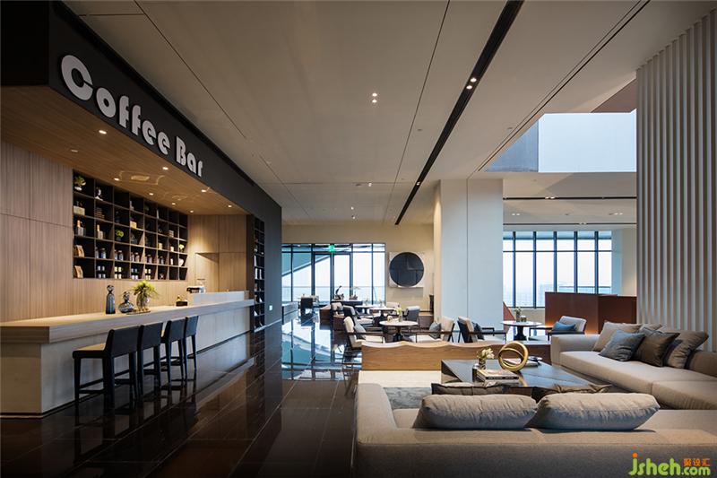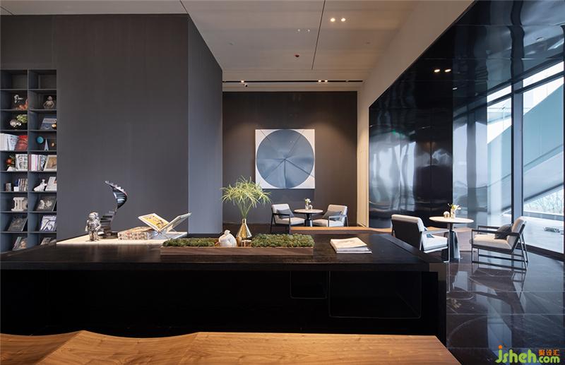 LOUNGEBAR位于接待大堂的中心,保留了空間整體性同時(shí),巧妙的將洽談區(qū)空間與沙盤(pán)區(qū)域分隔開(kāi)來(lái),保證參觀者的動(dòng)線互不干擾。