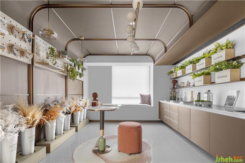在這里,花店不僅僅是一個(gè)花店,而是將花與藝術(shù)相結(jié)合,融入法式生活概念,打造花藝與休閑為一體的復(fù)合空間。