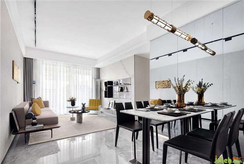 設(shè)計(jì)以低調(diào)的黑白灰呈現(xiàn)現(xiàn)代簡(jiǎn)約之美,棕色打破沉悶節(jié)奏,提升空間質(zhì)感。硬朗的金屬、玻璃材質(zhì)凝練精致品味,上好的意式皮革及布藝則營(yíng)造了柔軟舒適的居住氛圍。