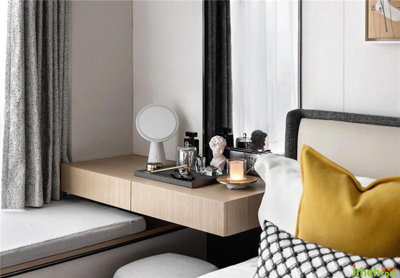 臥室整體色調(diào)素雅大氣,簡(jiǎn)潔的收納設(shè)計(jì)顯得輕盈而不繁重,視覺(jué)美感與實(shí)用功能兩相融合。