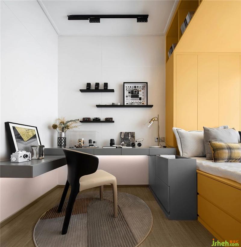 合理的空間布局便于日常收納,滿足全齡段的居住收納之余,還以明亮的顏色形成強(qiáng)裝飾性,彰顯出樂(lè)也融融、欣欣向榮的居住氛圍。