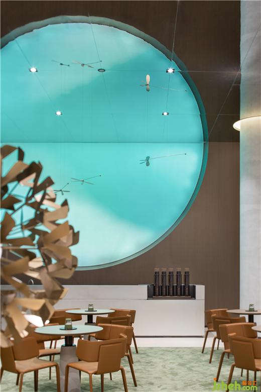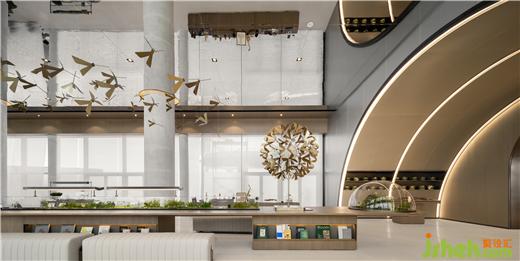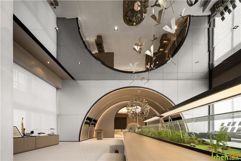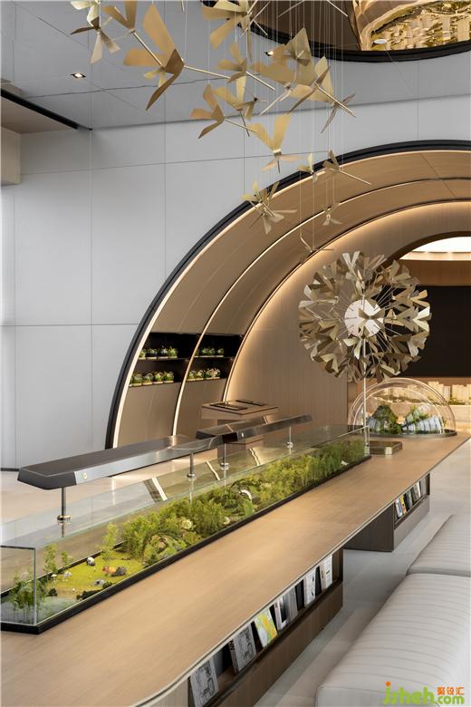 鏡面之上,月影旖旎,鏡面之下,樹影婆娑,吸取天空的顏色,售樓部設(shè)計用圓弧的輪廓筑起了大空間的藝術(shù)意境,飄散在半空的蒲公英種子宛若蜻蜓,泛起了人們心中的漣漪。
