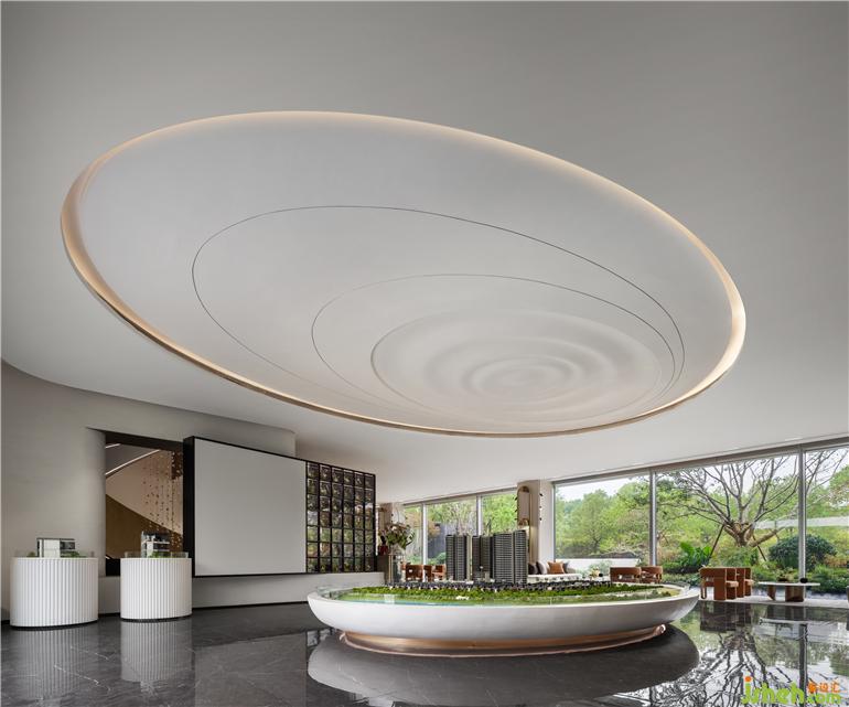 江西售樓處設(shè)計(jì)遵循一個(gè)室內(nèi)外交流的原則,將玻璃幕墻體量較大的墻體進(jìn)行了開(kāi)洞處理,讓室外自然也能引入至到室內(nèi),相互映襯。