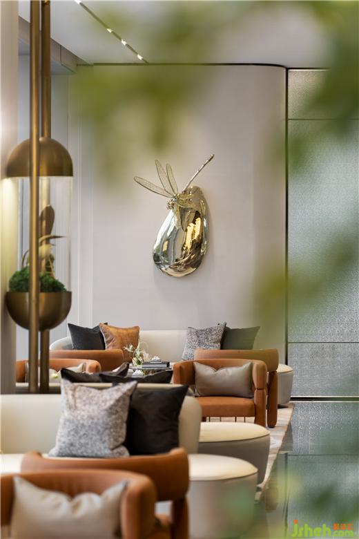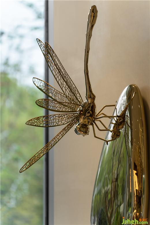 蜻蜒有“低飛過(guò)道,非風(fēng)即雨”的預(yù)知作用,藝術(shù)品《靜謐》通過(guò)蜻蜓與水珠的契合形態(tài),江西售樓處設(shè)計(jì)呈現(xiàn)出柔美輕盈的景象,帶出“小荷才露尖尖角,早有蜻蜓立上頭”的初夏意境。