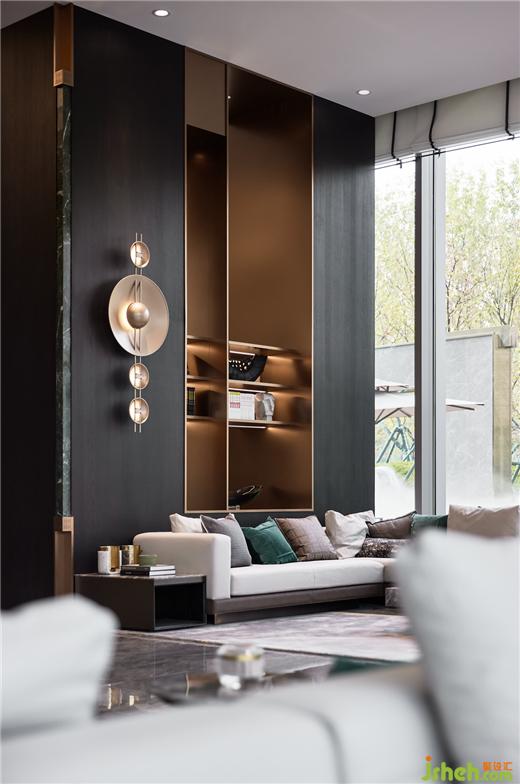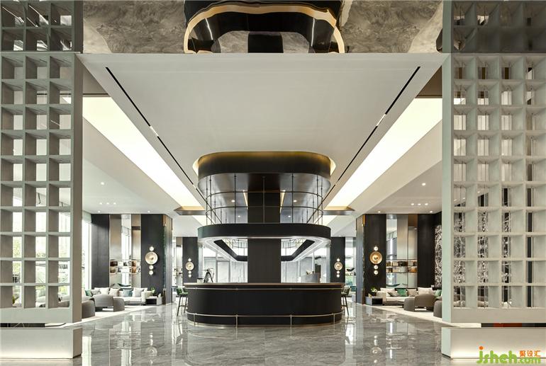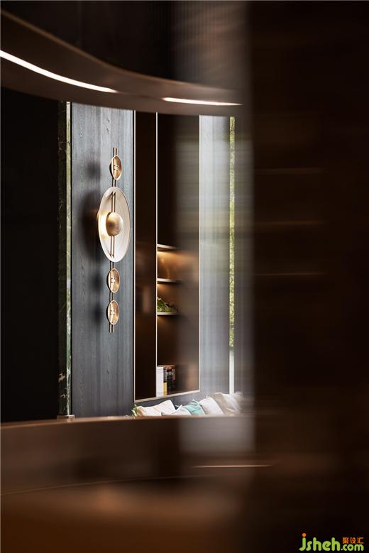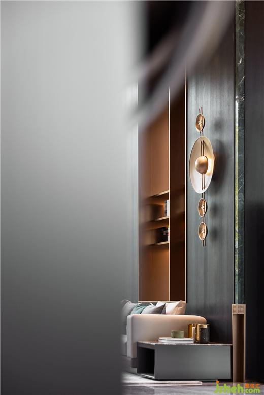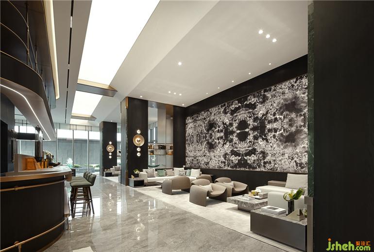 空間呼應藝術作品的同時,太原售樓處設計延續(xù)天珺的美玉之意,墻柱融入大理石材質(zhì)模仿玉石的自然紋理,金屬線條勾勒柜體,在黑白碰撞下為人們構(gòu)建一個干凈透亮的思考空間。