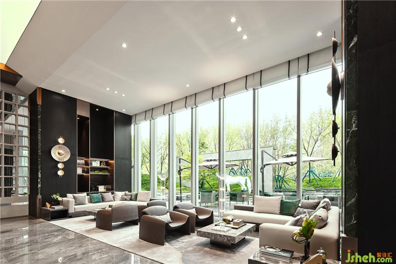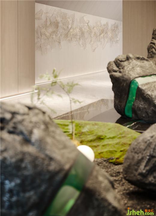 太原售樓處設計以自然融入空間,玉石的肌理與草地的起伏相得益彰,在原木包圍的空間下呈現(xiàn)萬物生長之境。