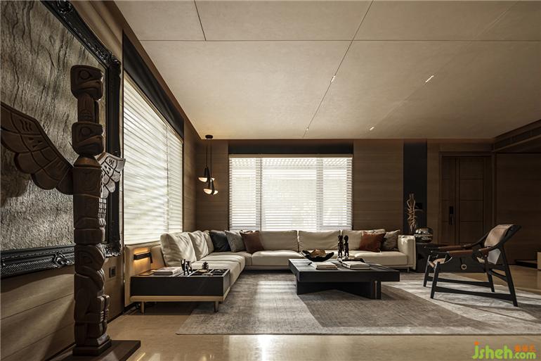 篝火之上,黃銅與棉麻的質(zhì)感塑造樸實(shí)的原始風(fēng)情,廣州疊墅設(shè)計(jì)部落文明的象征烙印在空間的各處角落。