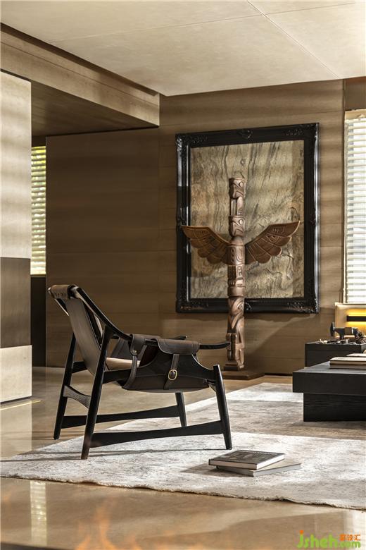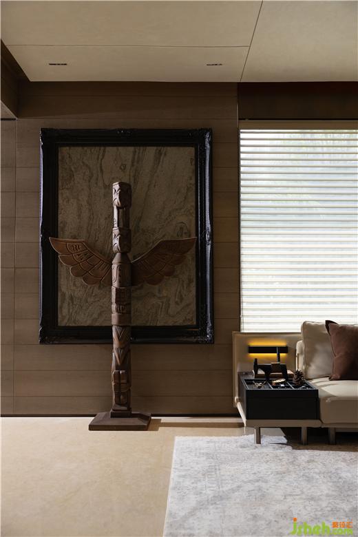 圖騰柱以鷹的形象代表勇敢,傳遞遠(yuǎn)古自然的神秘力量,廣州疊墅設(shè)計(jì)在原始風(fēng)格的工藝品下感受野性的魅力。