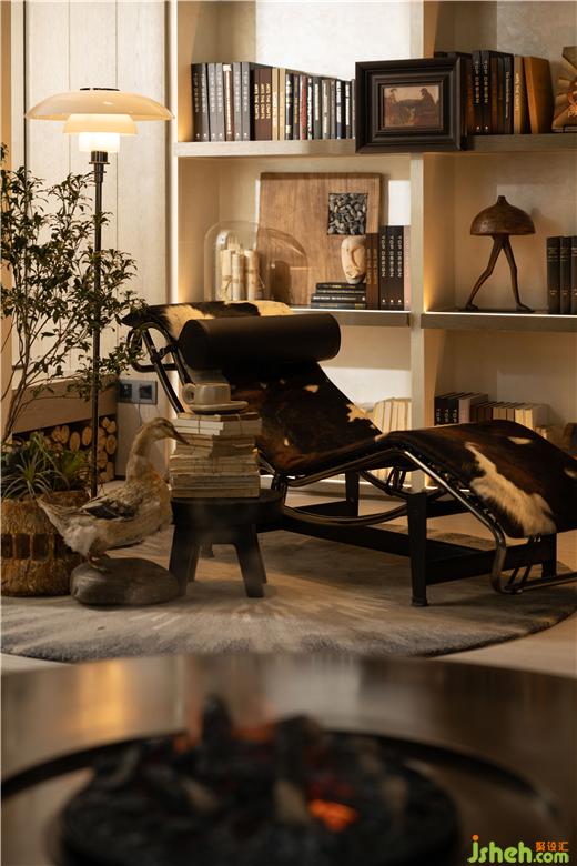 木制擺件營造叢林木屋般的感覺,廣州疊墅設(shè)計(jì)在躺椅上博覽群書,盡是風(fēng)雅。