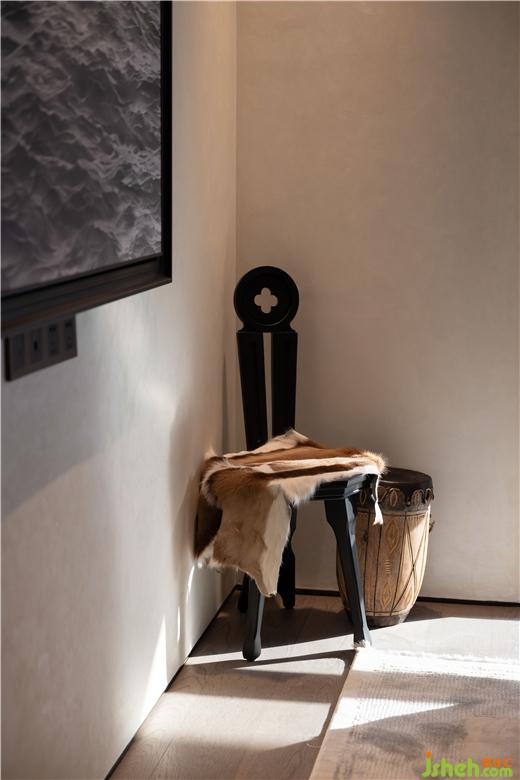 掛畫(huà)以古典花紋邊框修飾,角落處擺放民族風(fēng)十足的樂(lè)器鼓,廣州疊墅設(shè)計(jì)簡(jiǎn)約之中成為點(diǎn)睛一筆。