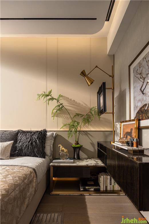 交由盆景的生長(zhǎng)線條勾勒出空間的雅致,床頭柜的雙層設(shè)計(jì)容納每本愛(ài)書的收藏,福州樣板間設(shè)計(jì)閱讀可以成為睡前的習(xí)慣。
