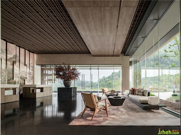 在山川懷抱下,游客服務(wù)中心設(shè)計(jì)師更強(qiáng)調(diào)室內(nèi)色彩的沉靜和造型線條的簡(jiǎn)潔,自然成為空間的主角,打造養(yǎng)生靜心的溫泉小鎮(zhèn)氛圍,為禪都宜春錦上添花。