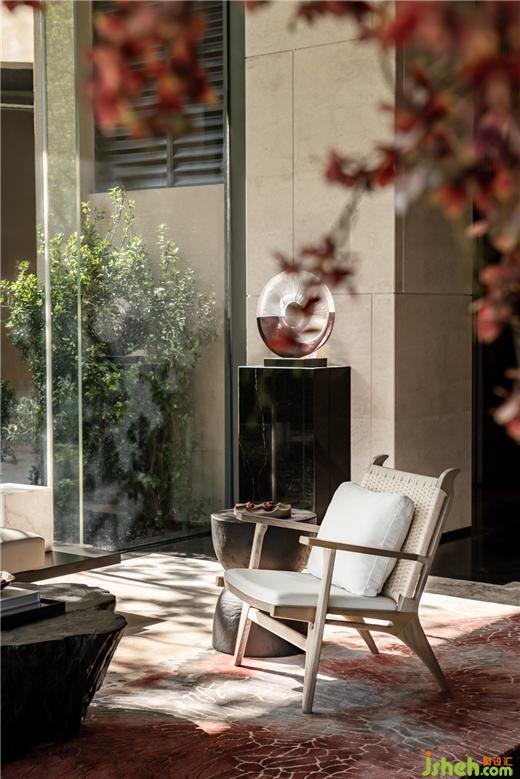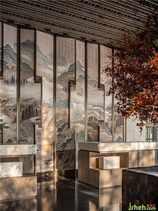 紅葉掩映,山水國(guó)色,原木的溫和質(zhì)感治愈到來的每位賓客,等待的片刻將窗外的山清水秀盡收眼底。
